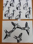 2017年6月27日 16時43分| 木版画をつくっています。 彫刻刀で彫り、版をつくりました。 丁寧に彫っていました。 まわりを切って、生物の形にしました。 | | |