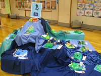 家庭科作品 5年生 「リバーシブルバッグ」 6年「エプロン」 | 全校共通制作 「光のプレゼント」 | 写真作品 1、2年生「あたらしい おともだち」 3、4年生「ここがお気に入り」 5、6年生「鏡の世界」 |